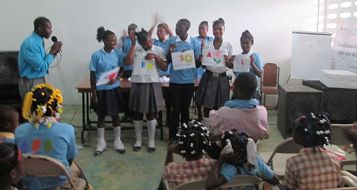 La primera, establecer un sistema de potabilización del agua; Para su gestión, se ha dotado a los colegios de kits de potabilización. Este punto supone reducir uno de los factores de riesgo en la vida de la comunidad escolar puesto que en un país donde la sanidad es privada y la gran mayoría de la población no puede acceder a ella, las enfermedades diarreicas suponen una gran lacra social. La limpieza de las instalaciones es fundamental y por este motivo, aprender a mantener limpias las instalaciones, realizar mantenimiento preventivo, limpiar las cubiertas antes de la época de lluvia, uso adecuado de las instalaciones, y no menos importante, aprender a organizar, definir tareas y responsabilidades así como contar con las herramientas necesarias para ello es indispensable para llevar a cabo estos proyectos Otro foco a tratar es Gestión de deshechos, Haití es un país donde no existe un sistema nacional de recogida de basuras, es por esto que los residuos que generan los colegios, en este caso, no eran tratados y la basura se quemaba sin control alguno. Aprender a gestionar los desperdicios supone otro gran avance en la sociedad, por ello, se han impartido talleres a la comunidad escolar y se ha adecuado el colegio con papeleras de reciclaje, en todas las zonas comunes y se ha señalizado debidamente para potenciar el mensaje y que se convierta, como hemos comentado anteriormente, en hábito. |